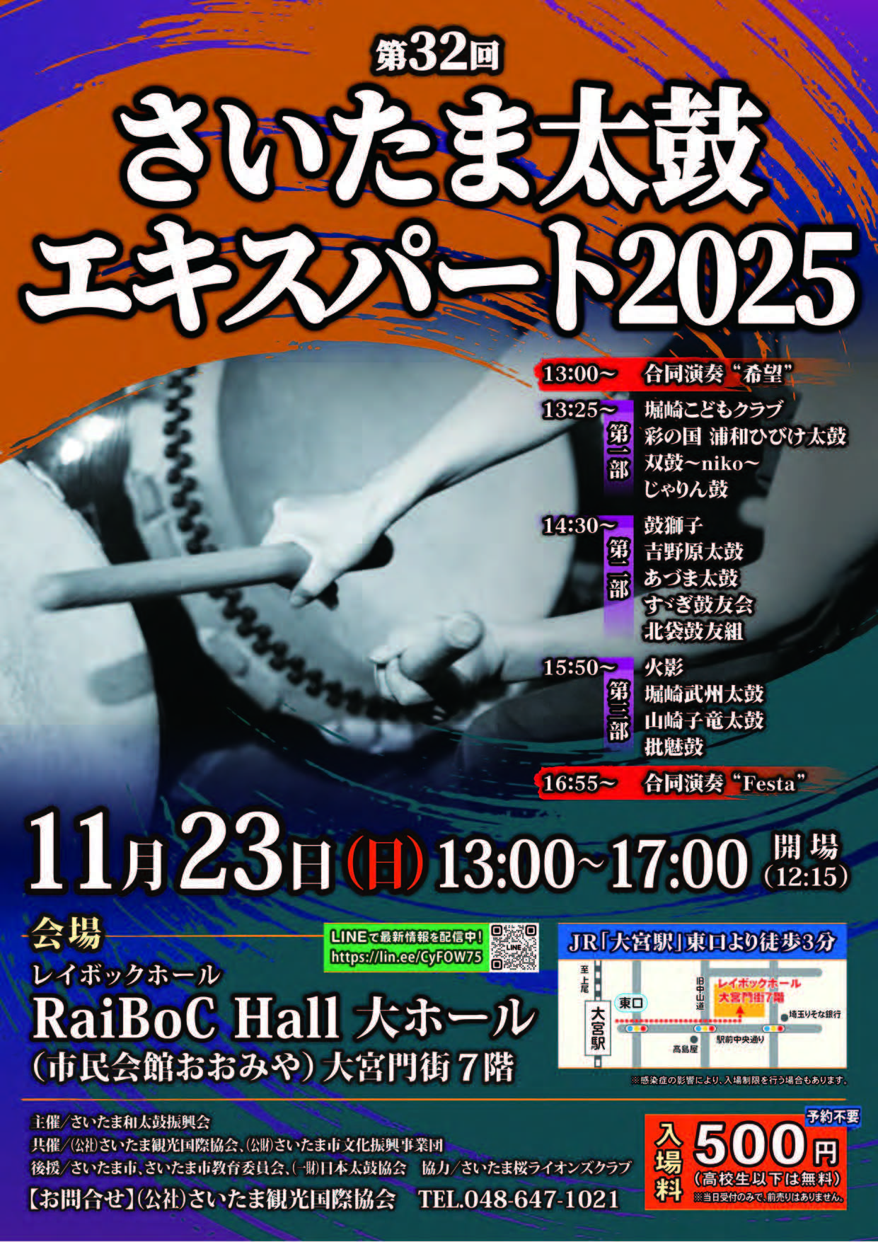 2025年11月23日(日)大宮レイボックホールにて、「さいたま太鼓エキスパート2025」が開催されます。